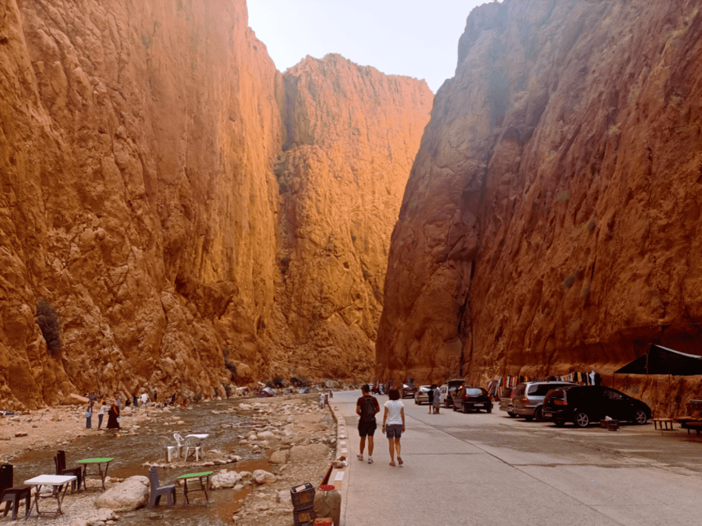 Getting up early to watch the sunrise and then having breakfast when your guide calls you to do so. After a long journey, you arrive at your hotel to take a hot shower and prepare for the next day of the tour. When you go to Rissani, you can explore the Souk (local market) and view the Fondouks, where donkeys congregate, in addition to visiting Zawiya Moulay Ali ash-Sharif. We continue traveling through "the capital of marble fossils" to reach Erfoud-Tineghir. On our journey, you'll notice the Khatarat (deriego canal system). Tinejdad, or Tineghir, is where we will have lunch next. After that, we'll follow the river to the gorges, where we'll do a walking tour and take in the breathtaking views of the towering rock walls (up to 300 meters). After that, we travel to the Boumalne Du Dades Gorges, where you may spend some time exploring the gorges and the rock formations that contrast with human bodies and fingers of monkeys. Spend the night and get breakfast and dinner at a hotel, riad, or guest house.
