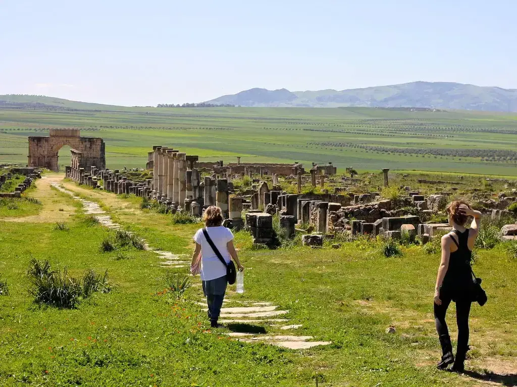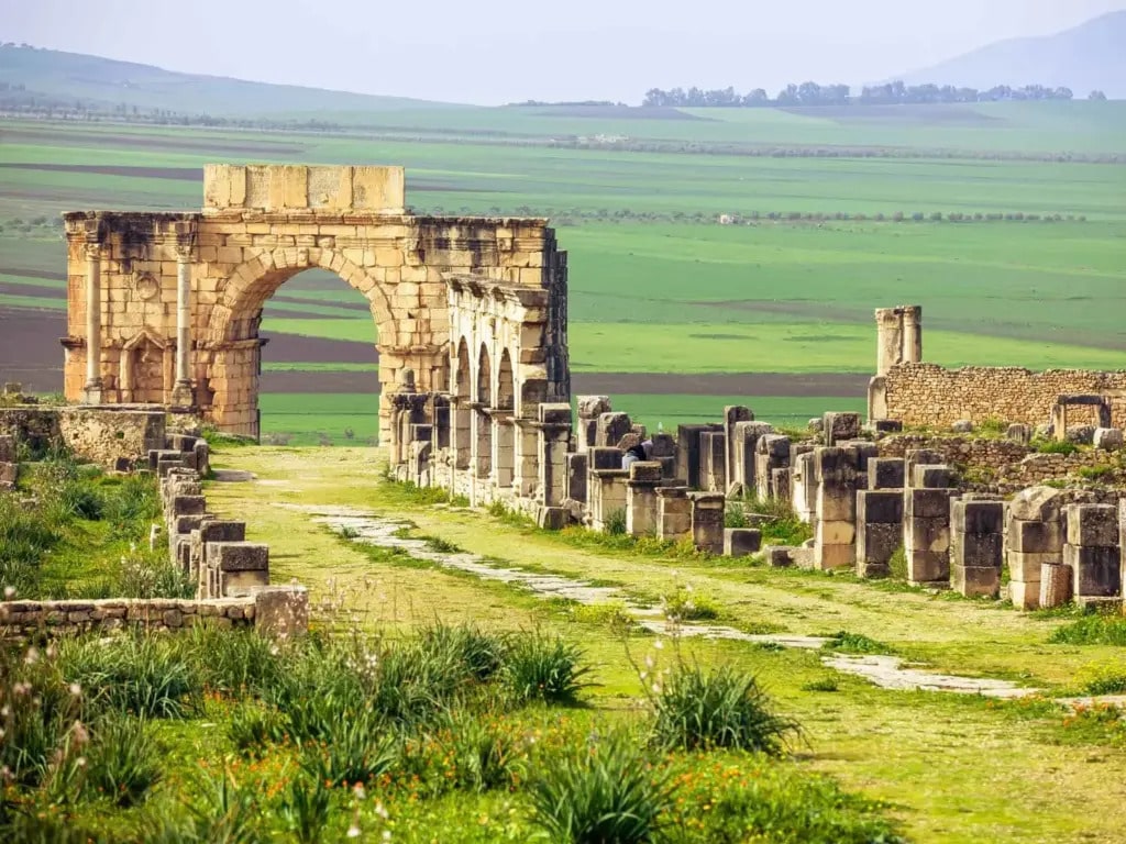 Following breakfast at your place of accommodation, we depart the blue city and journey through the region's breathtaking scenery. Until we arrive at Ouazzane, which is home to some of Morocco's greatest honey and figs, we pass fields of wheat, wildflowers, and traditional metal-roofed homes. A tour to the Roman Ruins of Volubilis, a UNESCO site, comes next. There are several streets, buildings, columns, mosaics, and a massive doorway among the extensive excavations. This significant city, which was first established in 225 BC, offers a fascinating window into Roman life in the area. You will discover all about its significance and history with your guide. We then travel to the imperial city of Meknes, which was established as a military settlement by the Almoravides dynasty in the eleventh century and developed into a metropolis under Sultan Moulay Ismail in the seventeenth century. With the construction of the huge Bab Mansour, the ramparts, the granary, the Sahrij Swani Basin for cultivation and water storage, and a gate of elaborate mosaic, or Zellige, he brought a Hispano-Moorish architectural style. After touring the stunning city of Meknes, we continue on to Fes, the spiritual capital, where we spend the night with breakfast at a hotel, riad, or guest house.